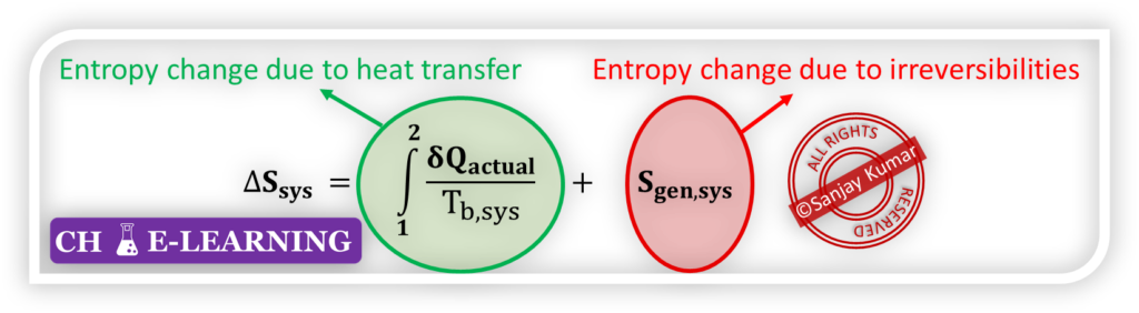 - For a reversible process, there are no irreversibilities; hence entropy generation term is zero (Sgen,sys = 0).
