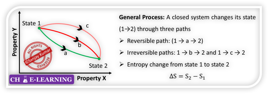 - Therefore, the change in entropy between two specified states is independent of the process path.