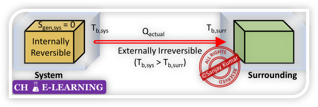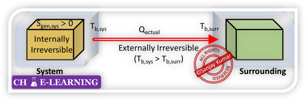 For an irreversible process, there are irreversibilities both within the system and at the system–surroundings interface: (Sgen,total > 0)
