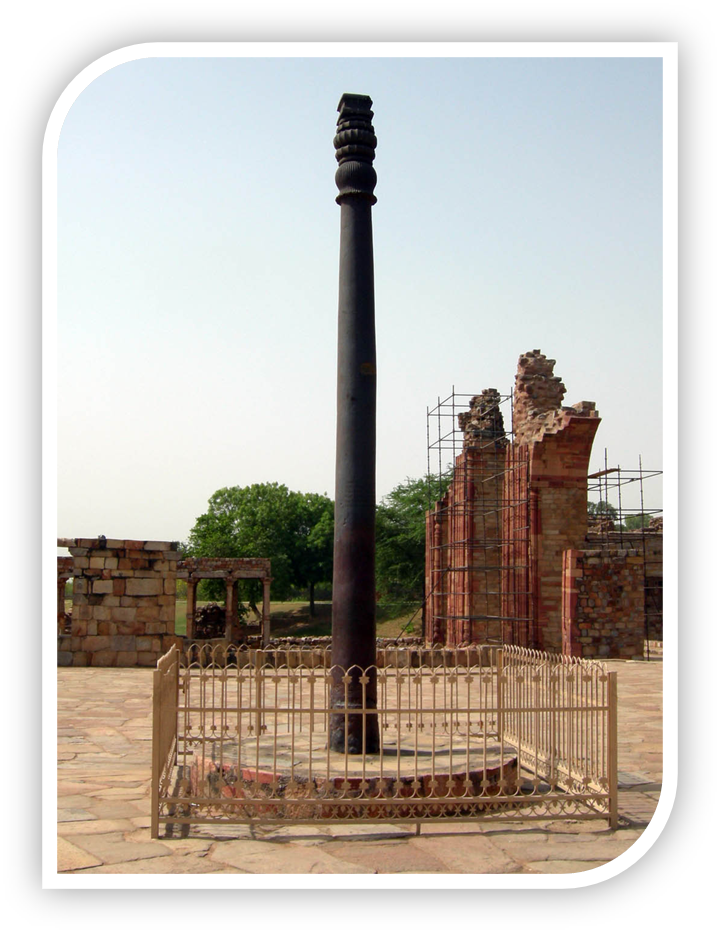 - Metallurgy: Advanced techniques in smelting, alloy preparation, and corrosion resistance (e.g., Delhi Iron Pillar). The Delhi Iron Pillar remains rust-free for over 1,600 years, demonstrating advanced material science.